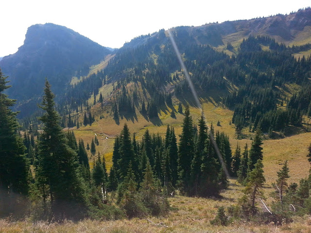 After dinner we hiked to a spring 5 miles on, and it was still pretty light outside. We agreed that we could get a couple more miles in, and the whole afternoon seemed to disappear with the fading daylight. The conversation was good and kept us both awake, even after the sun went down and we were hiking with headlamps. Eventually, we stumbled upon a campsite next to a dirt road and decided to call it a day. We set up our near identical tents right next to each other and talked as we did our nighttime chores. It had been a productive day of hiking, and I felt really good again. I wasn't even that tired, and felt as if I could hike 5 more miles, but knew I'd be missing some cool stuff hiking in the dark. I also tend to stumble a bit more by flashlight, so it is best to stop shortly after dark. We are only 37 miles from Snoqualmie Pass now, a town I'm excited to visit. I think it is where Twin Peaks was filmed, and that makes me think of pie. I could certainly go for a piece of pie when I get there. Pie indeed.